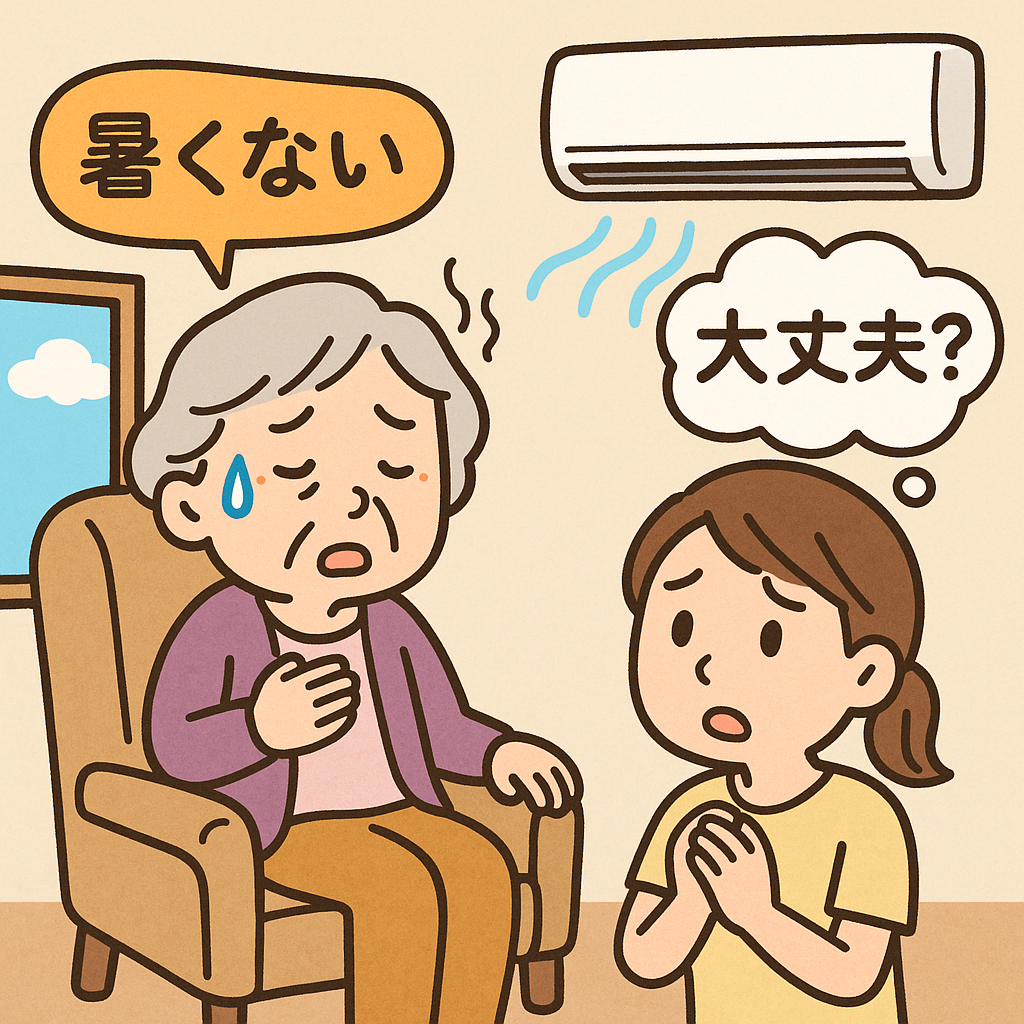 「暑くない、大丈夫」と言うご本人こそ、熱中症のリスクが高いかもしれません。